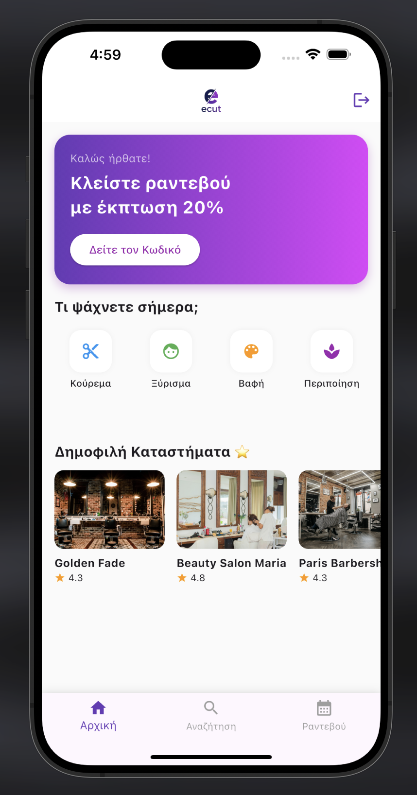 Με εμπειρία στην ανάπτυξη σύνθετων εφαρμογών όπως το **e-cut**, συνδυάζουμε το καθαρό design με τις πιο σύγχρονες τεχνολογίες του σήμερα.